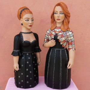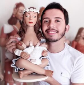 Com detalhes modernos em suas criações, como olhos delineados, cílios postiços e cores vibrantes, Augusto mistura o antigo e o novo, enriquecendo a cerâmica do Vale como uma expressão cultural dinâmica que transcende o tempo, conectando passado e presente de maneira harmoniosa.